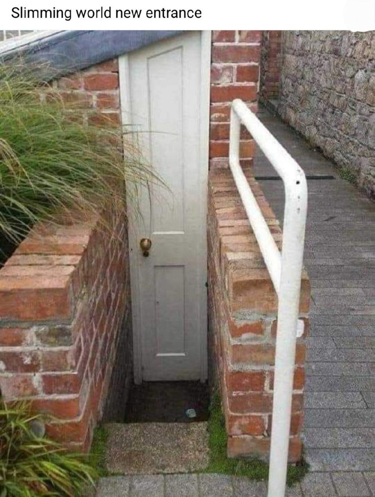Wide doors are overrated! This entrance is designed exclusively for people who take their diet seriously. Want to get in? First, pass the “fitness test”!