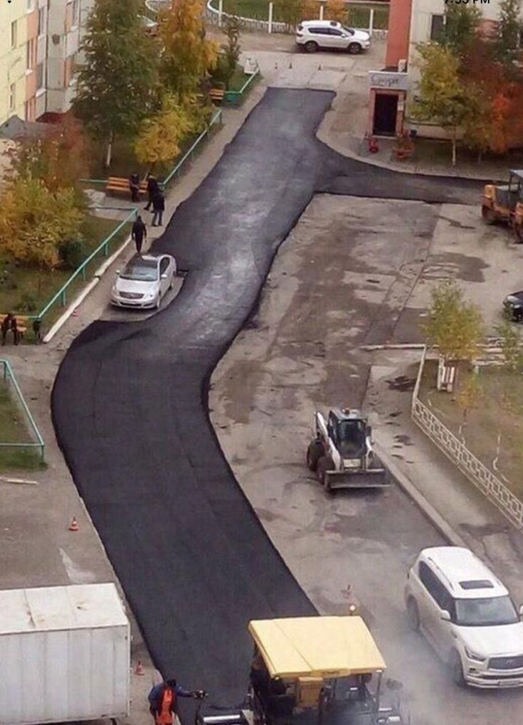 Road workers could have waited for the car to be removed, but patience is overrated. The logical solution? Pave the road around the obstacle! Now, this car owner can boast of a private island in the middle of the asphalt.